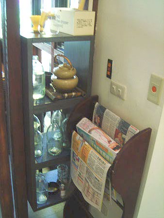 櫃子上擺著漂亮的罐子還有黃色kono手沖組