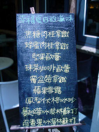 "還有外面沒有 我們自己的特調 覆盆莓拿鐵 抹茶咖啡歐蕾 都很不錯喔!"