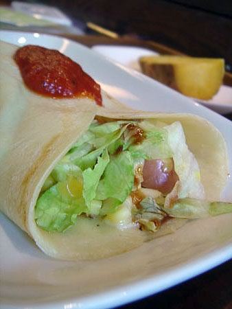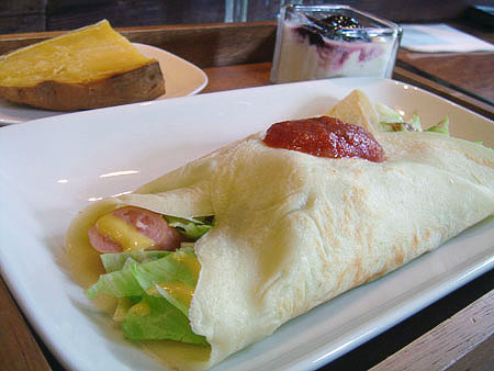 法式軟餅 軟餅裡包著維也納香腸 生菜 玉米